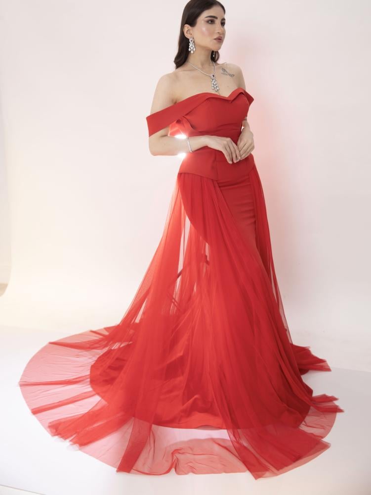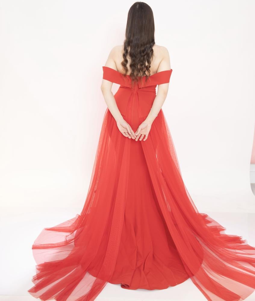 فستان سهرة احمر طويل