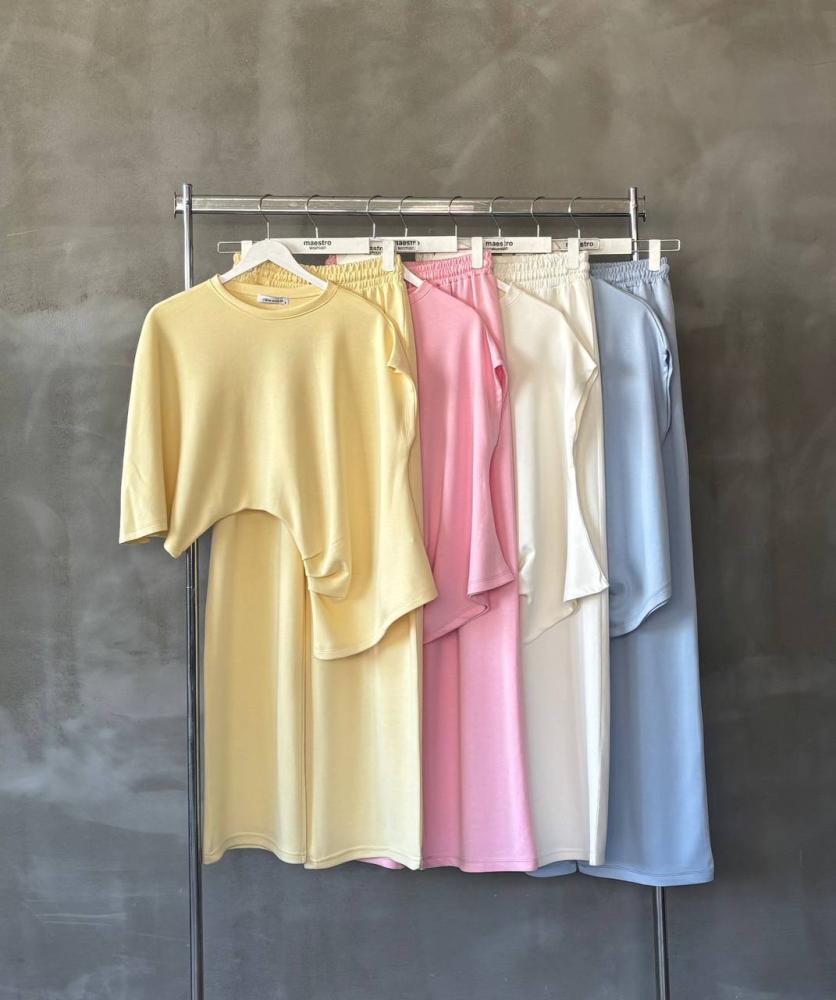 طقم من قطن مكون من قطعتين بقصة أكمام جميله