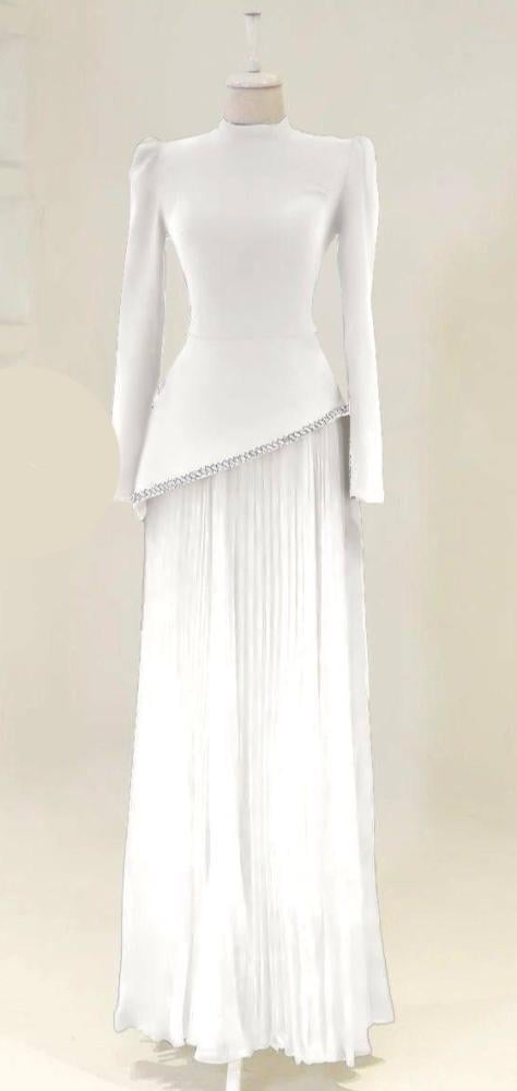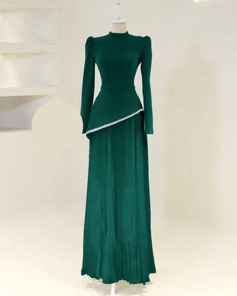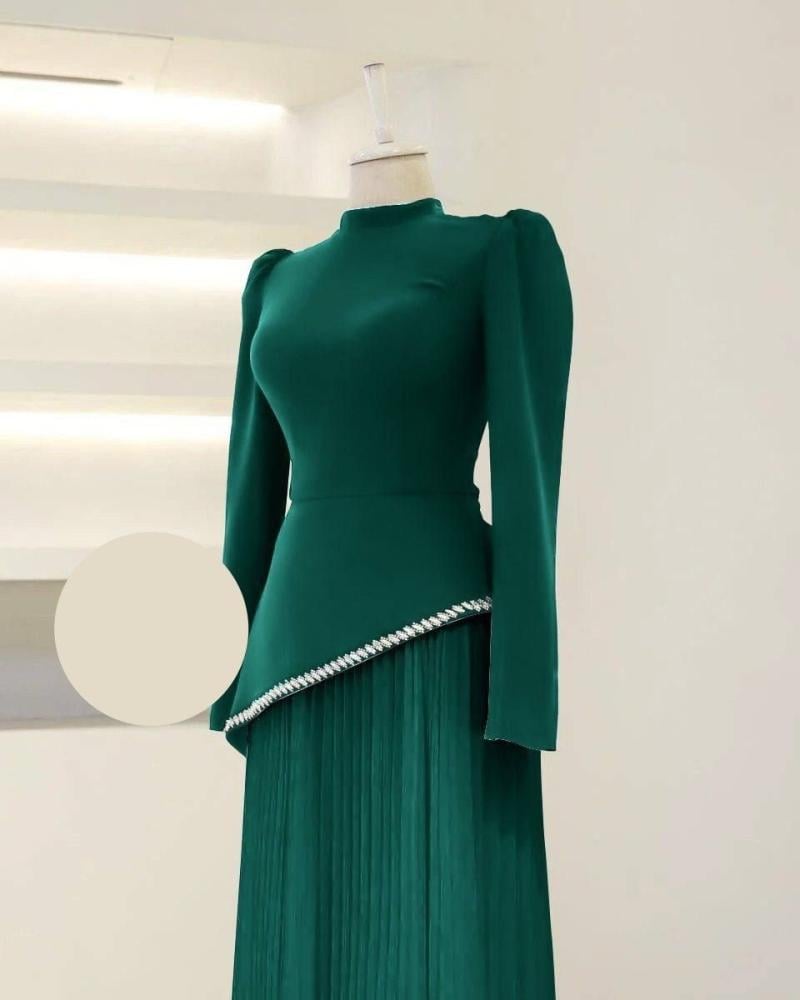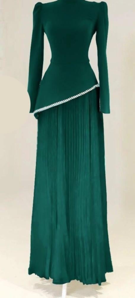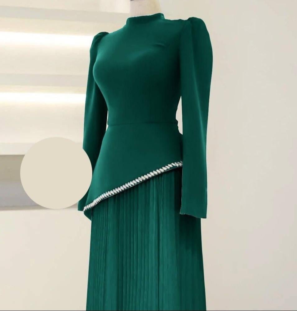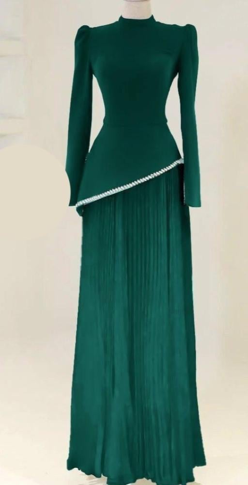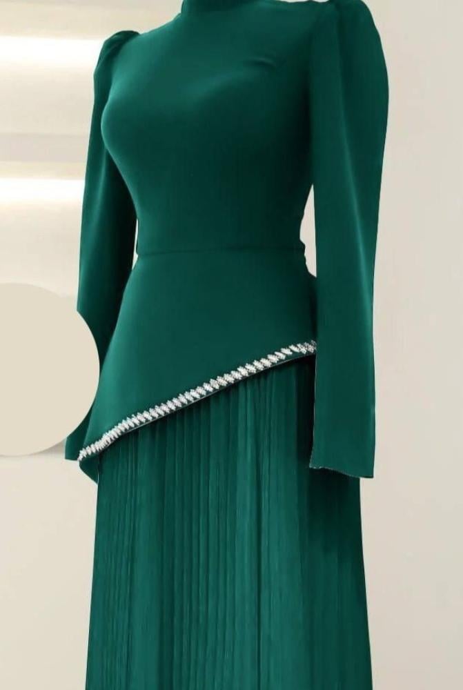 عندما يمتزج التصميم الكلاسيكي مع التفاصيل الفاخرة تكون النتيجة قطعة استثنائية تليق بإطلالتك الفريدة يتميز فستان بقصة كلوش بتصميمه البليسيه الناعم وأحجار الكريستال المتألقة،مما يمنحكِ إطلالة مميزة تناسب مختلف المناسبات سواء كانت حفلات مسائية أو مناسبات رسمية.