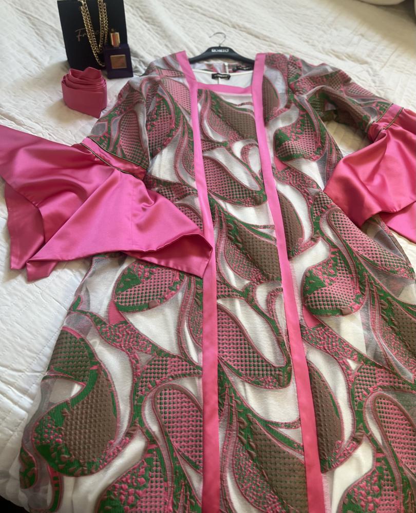 - جلابيه وردي مطرزة: جلابية استقبال بتطريزات تضفي لمسة من الأناقة والفخامة على إطلالتك.